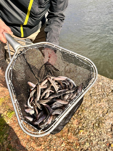 Die kleinen 4-8cm großen Hechte müssen mit bedacht auf der gesamten Fischwasserstecke verteilt werden, hier wird die Fischerzunft von tatkräftigen und zuverlässigen Zunftmigliedern und Helfern unterstützt.